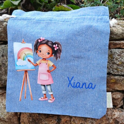 5,00 € IVA incluidoBolsa azul arco da vella de merenda con nome. Tamaño 25X30cm.