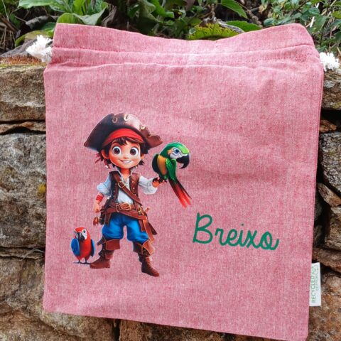5,00 € IVA incluidoBolsa vermella pirata de merenda con nome. Tamaño 25X30cm.