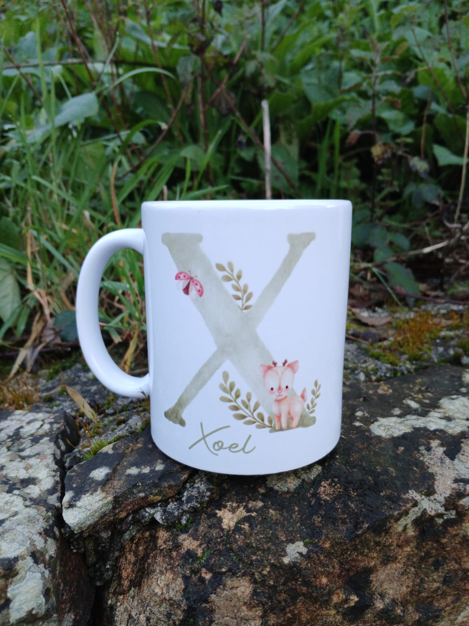 Taza de cerámica de 350ml; podes personalizala pola parte traseira coa túa frase ou evento